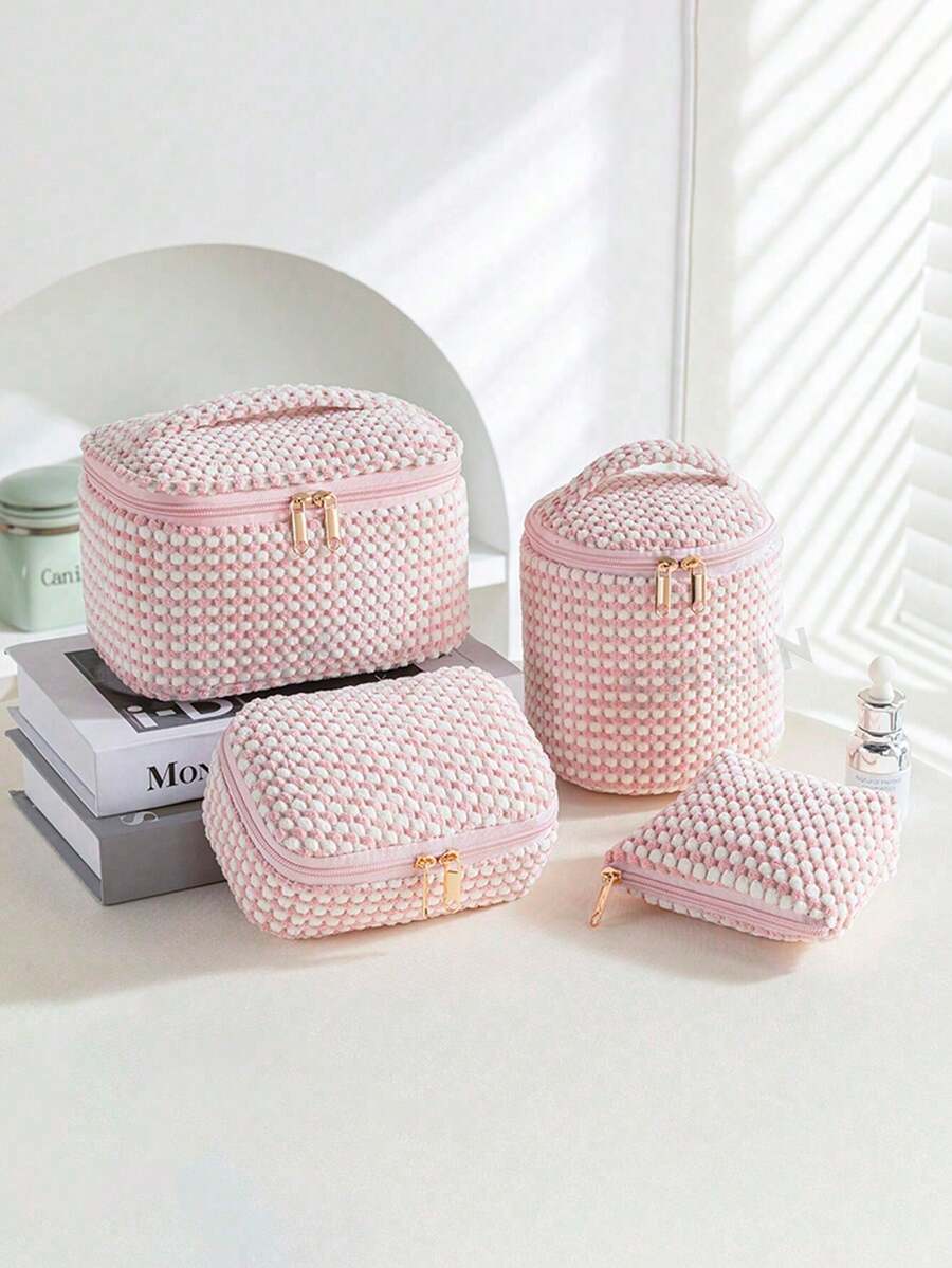1 Pink Velvet Material Cosmetic Bag Travel Portable Storage Bag, Women's Cosmetic Bag Lipstick Bag, Travel Cosmetic Bag Storage Bag, Polka Dot Pattern Large Capacity Cosmetic Storage Bag, Toiletry Bag Large Capacity Velvet Storage Bag