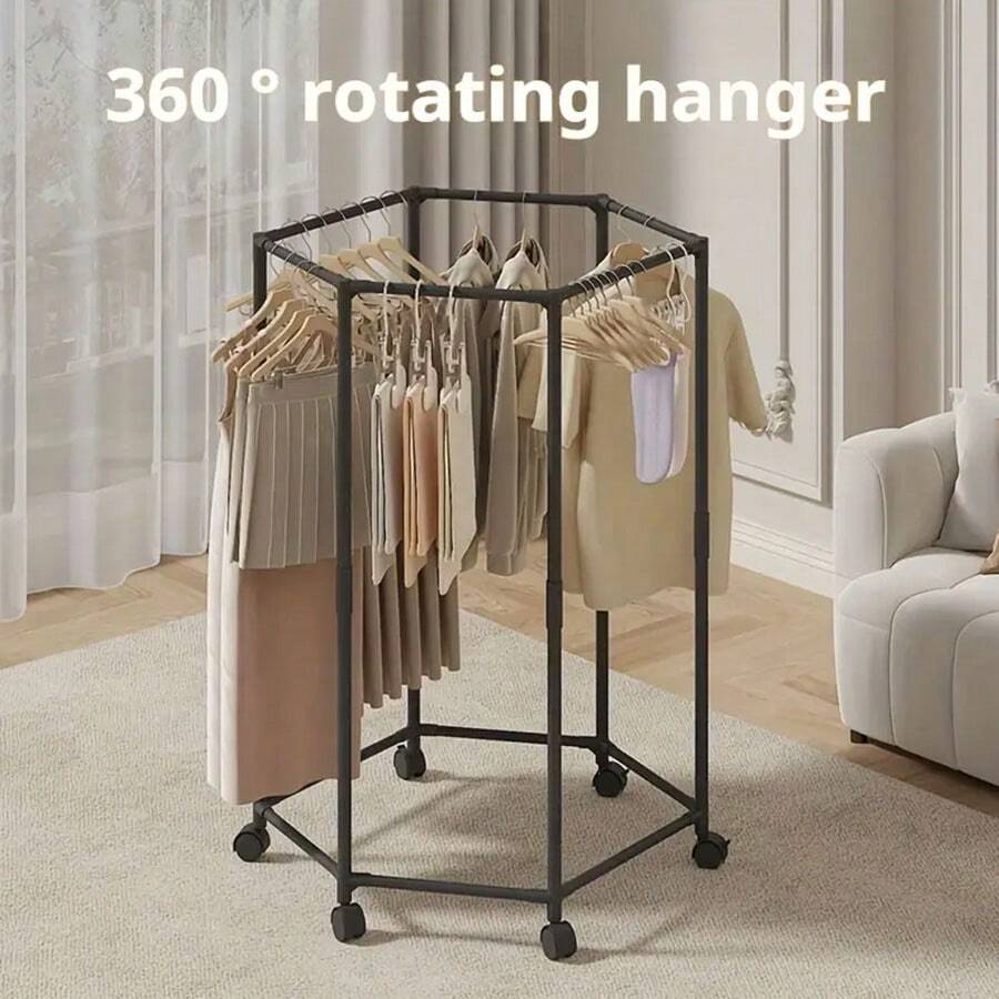 1pc 360° Rotating Floor Standing Garment Rack With Wheels - Sturdy Metal Frame, Space-Saving Portable Design, Suitable For Laundry Room, Boutique Display And Home Storage, 150 Lbs Capacity, Clothes Hanger, Laundry Room Accessory, Modern Aesthetic, Durable Structure
