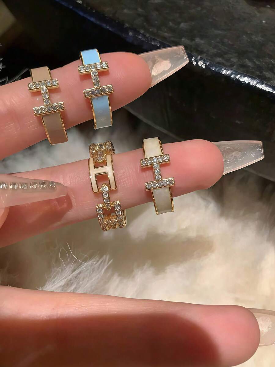 1pc/4pcs Set Letter "H" Enamel Micro Inlaid Zirconia Ring, Luxury Feeling Open Ring Suitable For Women's Daily Life, Travel, Dating, Evening Party, Beach Vacation, Back To School, Graduation, Holidays And Party Gifts