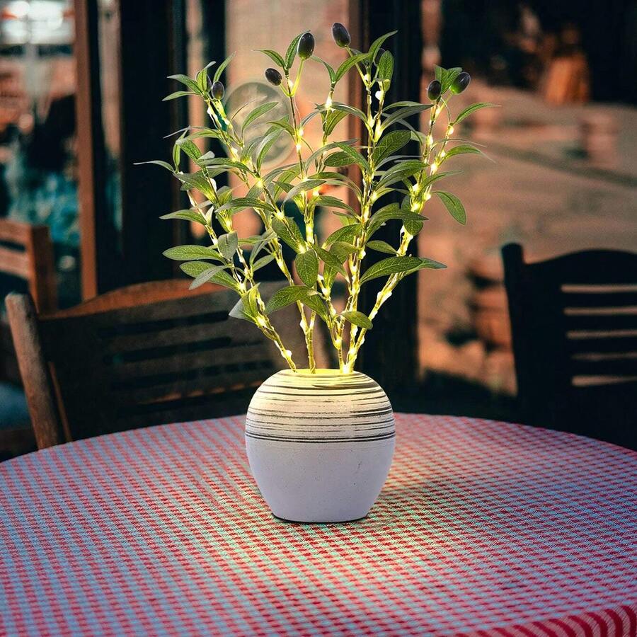 1pc Artificial Olive Tree Branch With LED Lights - Battery-Powered Modern Home Decor Lamp, Green Foliage & Realistic Branches For Wedding, Birthday, Party, Office, Bedroom, Hotel - Ideal For Cabinet, Dining Table, Cafe, Holiday, Spring Restaurant De