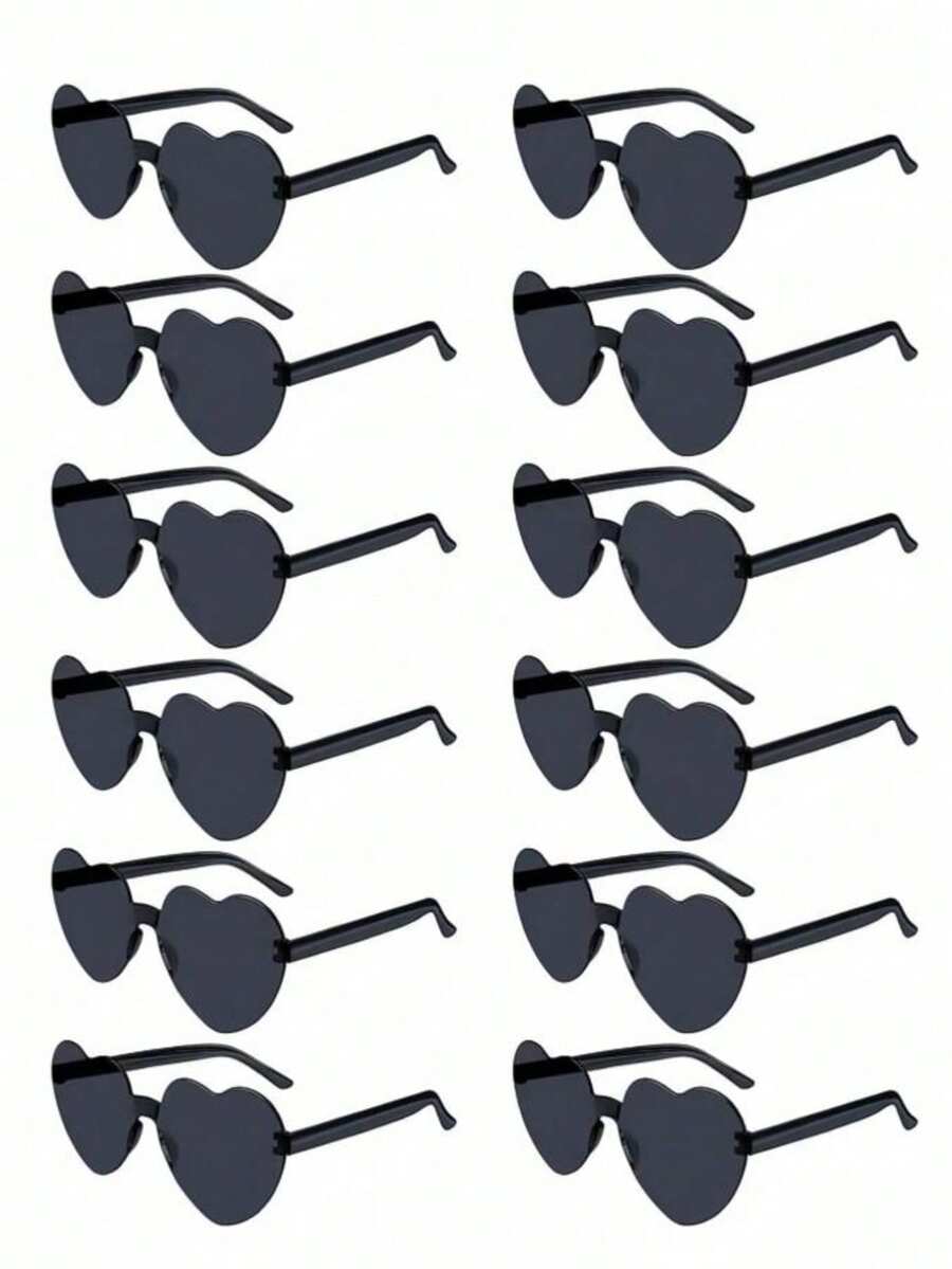1pc/12pcs Heart Shaped Party Glasses, Black Fashionable Frameless Heart , Fun Party Favors, Suitable For Bachelorette Party, Bridal Party, Wedding, Bride Tribe Gift, Fashion Accessory, Halloween Trick Or Treat, Party Favors, Pool And Beach Party, Summer Party, Merry Christmas, Happy New Year (Slightly Scratched During Shipping, Does Not Affect Use)