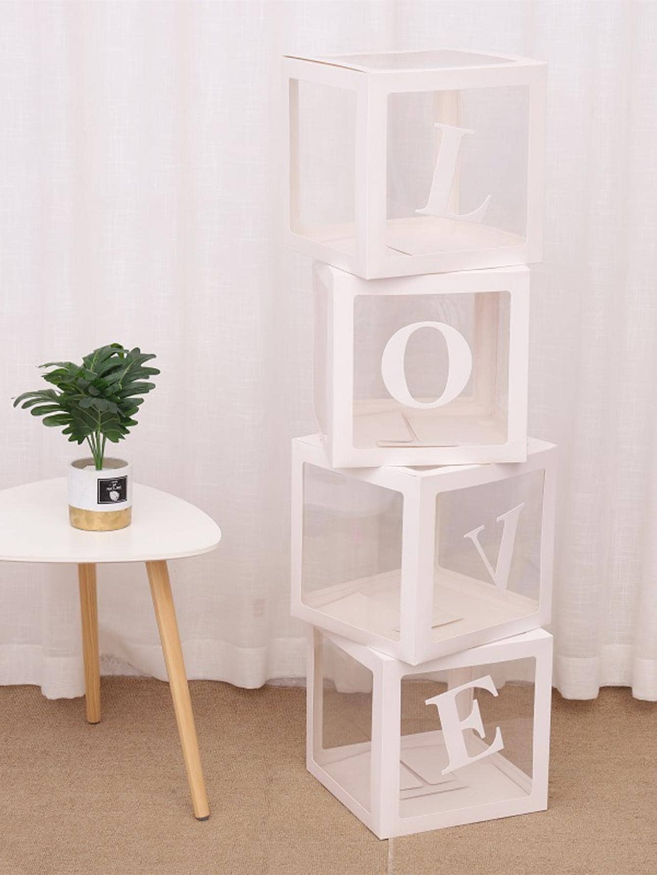 4Pcs/Set, 25cm/9.84in Transparent Balloon Box, White LOVE Letter Wedding Decoration Supplies, Birthday Party Set, Valentine's Day Event Scene Arrangement, Props Full Set(Without Balloon), Party Decor, Party Packs, Holiday Supplies, Holiday Arrangement, Scene Decor, Shower Balloon Box