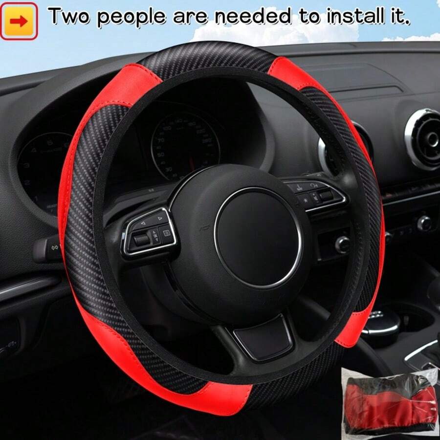 All-Season Carbon Fiber Textured PU Leather Steering Wheel Cover Without Inner Rim. Requires Two People To Install. 14.5-15 Inches. Breathable, Non-Slip, Wear-Resistant, Comfortable, And Durable. Automotive Interior Accessories.
