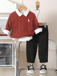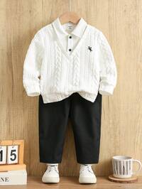 WimblieSHEIN 3pcs Baby Boys' Formal Outfit - Long Sleeve Jacket + Pants + Bowknot , Fashionable Luxury Set, Suitable For Birthday Party, Banquet, Performance, Wedding, Christening, Halloween, Christmas, First Birthday And Other Formal Occasions, Infant And Children Wedding Gentleman Attire / Wedding, Wedding Guest, Ring Bearer, Page Boy, Baby Family Matching Set