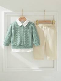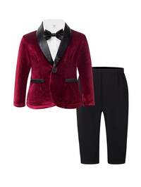 SouflisSHEIN 2pcs/Set Baby Boy Green Velvet Blazer Jacket & Black Pants Outfit, Gentleman Suit, Suitable For Indoor, Outdoor, Daily, Sports, Play, Party, Photo Shoot, Wedding, Baby Shower, Christening, 1st Birthday Celebration, Elegant, Wedding Guest, Pageboy, Ring Boy, Wedding, Festival, Halloween, Christmas, New Year In Fall/Winter