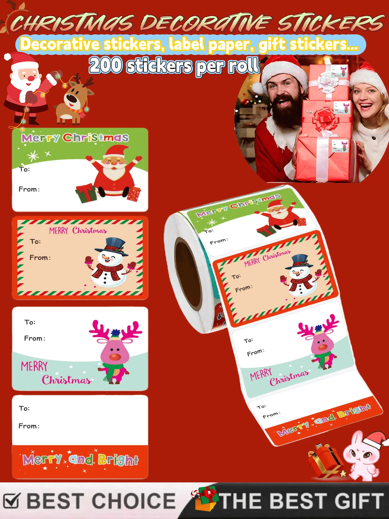 Christmas Sticker, 200 Sticker/Rolls, Christmas Holiday Sticker Labels, Waterproof Stickers, Waterproof Labels, Gift Stickers, Gift Packaging Supplies, Wrapping Paper, DIY Packaging, Suitable. Flower Wrapping Paper, Party Supplies, Flower Shop Supplies, DIY, Weddings, Anniversaries, Birthdays, Flower Shops, Birthday Gifts, Proposals, Christmas Gifts, Halloween, Christmas, Back-To-School Season, Thanksgiving, Mother's Day, Father's Day