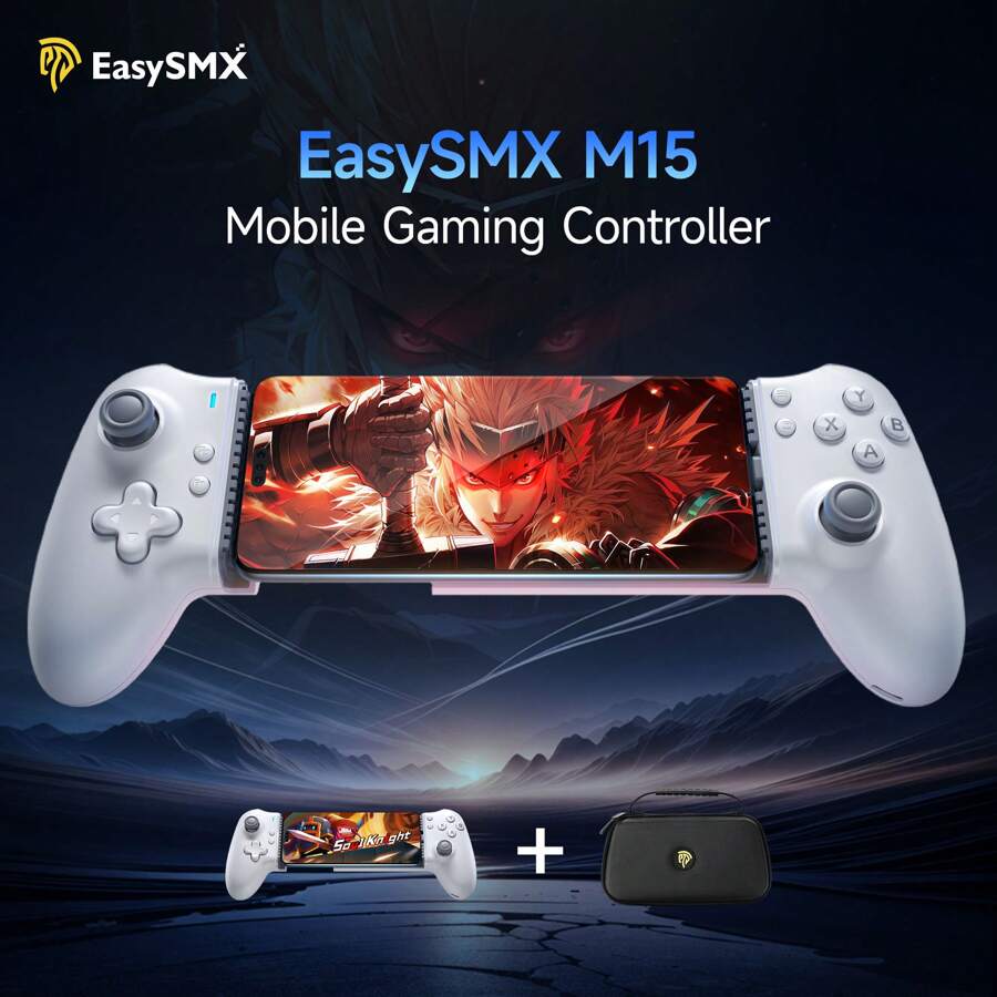 EasySMX M15 Android Mobile Game Controller, Compatible With IOS 15 And Above, Most Android Phones, Supports Bluetooth & Wired Connection, 6-Level Vibration Feedback, Advanced Mechanical Buttons, Hall Effect Joystick And Triggers, Programmable (Includes Storage Bag)