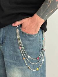 PXsp1pc Faux Pearl Flower Cross Rhinestone Decor Waist Chain, Fashionable Unisex Body Chain Accessory, Suitable For Halloween, School, Autumn/Winter, Casual, Outdoor, Sports, Vacation, Graduation Gift, Birthday, Daily Wear