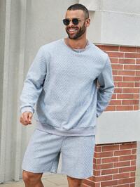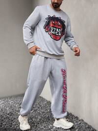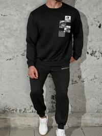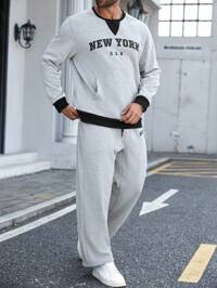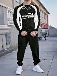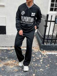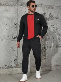 Manfinity VCAYManfinity Homme 1 Set Men Plus Sweatshirt Suit, Pullover Sweatshirt And Sweatpants Combo, Contrast Color Design, Graphic Print, Polo Collar, Half Zip Neckline, Elastic Waist Pants, Casual Everyday Wear, Commute, Back To School, Gift For Boyfriend/Husband, Fall Clothes