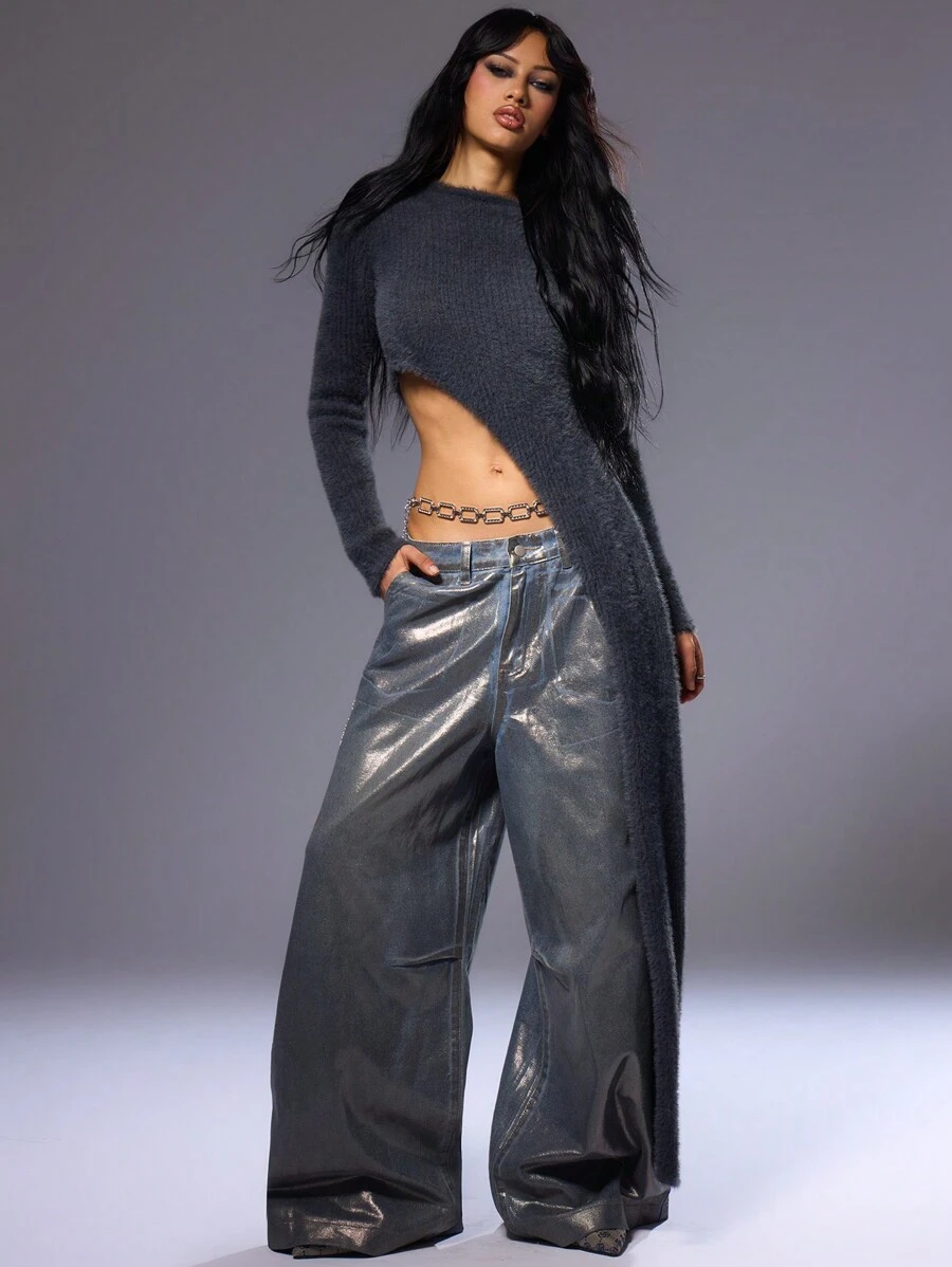 MUSERA Metallic Wax Denim Jeans Spring 90's Y2k Streetwear Spring Summer Cute Casual Festival Rave Ibiza Midnight Mass Concert Fall Autumn Winter Everyday Chic