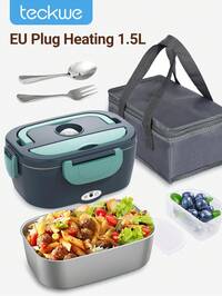 Teckwe Electric Lunch Box Food Heater, 7-IN-1 Portable Warmer With Stainless Steel, Box & Fork & Spoon, Green Heated Lunch Box Suitable For Ideal Driver/Work/Gift-EU Plug
