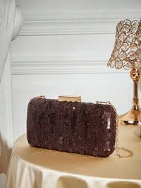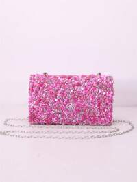 OpuLisseREMANLAND Mini Sequin Chain Pleated Square Evening Clutch/Handbag, Perfect For Matching Women's Ballgown, Ballroom Accessories, Sequin Dresses, Glitter Dresses, Elegant Formal Gowns, Elegant Ballroom Purses, Also Suitable For Bridesmaids, Applicable For Wedding Receptions, Parties, Weddings, Balls, Galas And Other Occasions.