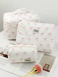 MICHELLE BAG1Pc Pink Bow Knot Design Quilting Large Capacity Cosmetic Bag, Fashionable Portable Makeup Bag, Girls Travel Make Up Bag ,Multi-Functional Storage Bag For Lipstick, Sanitary Napkin, Coins, Keys,Hair Clips ,Scrunchie Etc, Large Capacity Lovely Wash Bag For Travel Organizer Cosmetic Bag For Travel, Mother's Day Gift ,Back To School Gift ,New Year Gift , Valentine's Day , Valentine's Day