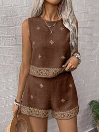 Zivah 2026 Spring/Summer New Music Festival, St. Patrick's Day, Valentine's Day, Date, Western, Nomadic Style Outfit, Suitable For Birthday Party, Graduation, College Style, Student Wear, Daily Casual, Basic Matching, Leisure, Vacation, Cruise Travel, Beach, Sunbathing, Viral , Streetwear, Wedding Guest, Bohemian, Commuting, Brunch, Airport, Party, Holiday Outings, Office Wear, Leisure Vacation, Vintage Style Asymmetric Sleeveless Top With Metal Buckle Decor, Woven Pants, Women's Casual Vacation Set