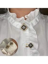 Glimmer& Glam Jewelry1pc 2026 New Elegant & Fashion European & American Quality Sun-Shaped, Flower-Shaped Inlaid White Shell Design, Gold Round, Pistil-Shaped Resin Pearl Design, Round Portrait, Scorpion Pattern And More Cufflinks & Collar Clips Options, High-End Women's Accessory Suitable For Party, Business, Formal Dinner, Daily Matching, Multiple Occasions. Handmade Enamel, Minor Flaws Are Inevitable, Suitable For Buttons Within 1.2/1.5cm Diameter