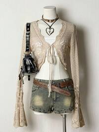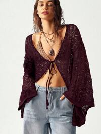TravachicTravachic Women's Summer Casual Solid Color Textured Sheer Open Front Long Sleeve Cardigan, Long Sleeve Tops, Tops For School,Suitable For Holiday, Date, Afternoon Tea, Western, Cruise, Beach, Island, Road Trip, All Seasons, Music Festival, Boho Vacation,Bohemian Vacation, Western Boho