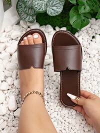 Wide Fit Women Casual Flat Slide Sandals, Round Toe Non-Slip House, Outdoor & Beach Slippers