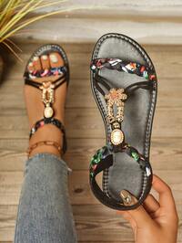 Plus Size Bohemian Sandals, Handmade Beaded Woven Retro Roman Beach Shoes For Women